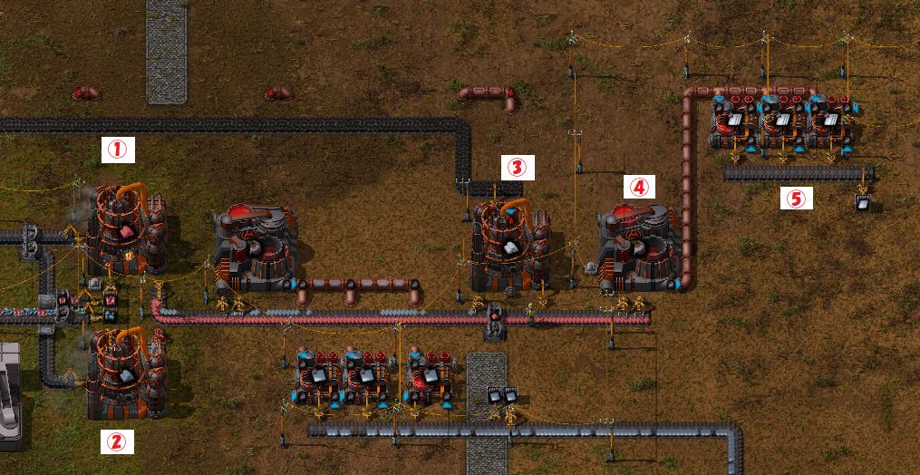 …うん、速度は余計な話でしたねw 鉄とマンガンの溶鉱炉への搬入インサータを増強すると良さげってのはありますが、余るマンガンをどうするかってのは……
